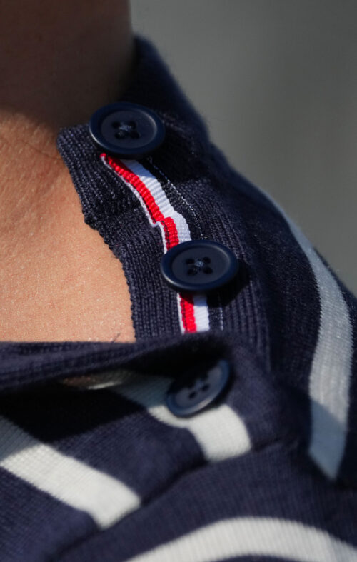 Col Boutonné avec bande de propreté tricolore à l’intérieur